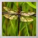 Artistic Dragonfly In Brown And Yellow On Green Poster
