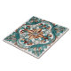 A beautifully crafted ceramic tile features a vibrant floral design with intricate patterns. The harmonious blend of turquoise and earthy tones creates a captivating focal point, highlighting the artistry of traditional tile craftsmanship.