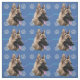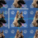 Handsome artistic rendition of the head of a German Shepherd Dog on a background of blue with paw prints and tracks in grey, blue and pink. Design by Diane Blackman. The same design is available with other fun dog images.