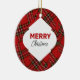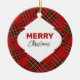Artistic Glitter Merry Christmas Red Plaid Ceramic Ornament