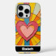A vibrant phone case design showcasing a textured artistic heart in bold colours. The customizable name field adds a personal touch to this inspirational and eye-catching aesthetic design.
