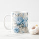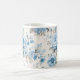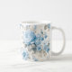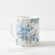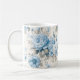 This delicate artistic design features pale dusty blue roses, wildflowers and hydrangea blossoms with light pastel sage foliage on eggshell background.