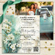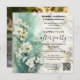 An artistic happily after wedding party invitation featuring a painting of white flowers on marble. The QR code template is optional. On the back is your favourite wedding photo. Great for a reception only or elopement celebration.