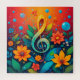 An artistic depiction of a treble clef intertwined with vibrant flowers and nature-inspired elements on a colourful gradient background, symbolizing harmony, creativity, and the connection between music and nature.