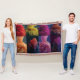 Abstract ink plume fabric featuring sixteen vibrant bursts of color in motion. A striking artistic pattern with fluid dynamics and bold contrasts—perfect for custom textiles, apparel, and home decor