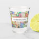 Artistic personalized colourful doodle art shot glass, personalized with name or text.