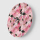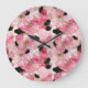 Artistic Pink Blooms Black Ink Abstract Large Clock