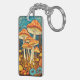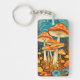 Artistic Retro Mushroom Forest Illustration Keychain