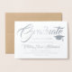 Artistic Script typography Photo College Graduation Announcement Card Invitation in horizontal orientation. Beautiful silver foil leaf on brown kraft style card paper, with mortarboard graduation cap icon logo. Wonderful and classic for any male or female graduate. Modern sophisticated graduation announcement is ideal for college level graduates or fancy high school students. Formal Classic Elegant design with stately script font writing. Great cheap inexpensive option in place of official school announcements. Formal to traditional and classic graduation invite suitable for anyone, whether grad school, trade school, nursing, medical or law school.