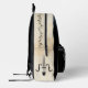 Crafted for the artist in motion, this backpack is the ultimate tribute to the creative spirit. The front features a striking black and tan design with a graphic that elegantly unites a treble clef with a soaring violin under a spotlight, setting the stage for your next performance. Adorned with the customizable phrase "A MASTERPIECE IS BORN WITH STRINGS AND A BOW" this bag speaks to the soul of every musician. Its unique side panel is both stylish and practical, showcasing a violin silhouette alongside a musical staff with notes and scales. This is a must-have for anyone who wants their passion for music to be seen and heard.