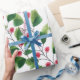 Artistic Watercolor Red and Green Berry Branches Wrapping Paper