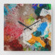 Bring artistic flair to your space with this unique square wall clock featuring a vibrant painter’s palette design. Perfect for studios, creative corners, or art lovers' homes, this clock combines functionality with inspiration. The colourful swirls of paint and water bubbles are a bold statement piece that celebrates creativity. Whether you're timing brush strokes or just keeping track of your day, this clock adds a splash of imagination to any wall.