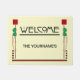 This vintage arts and crafts style rose design template was derived from an antique Elbert Hubbard book cover design.. The "Welcome" text is in an original font "Arts And Crafts GS". This font is loosely inspired by the decorative lettering of the Scottish Arts And Crafts Movement artists Jessie Marion King (1876 - 1949), and Charles Rennie Mackintosh (1868 - 1928) of the Glasgow School. The Scottish, or Glasgow school style was a counter movement to mainstream Art Nouveau. You can easily personalize the bottom text with your own surname or whatever text you want in this design template. All the graphics are separate elements that can be re-arranged or deleted. The beige background colour can also be easily customized, as well as the red colour.