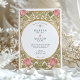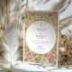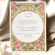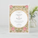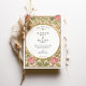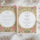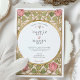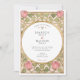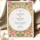 Declare your love with this uniquely romantic wedding invitation, inspired by the enchanting Arts and Crafts and Art Nouveau movements. This artistic design showcases a symmetrical border of stylized pink tulips and whimsical, heart-shaped leaves in a soft sage green. The entire illustration is defined by elegant, flowing linework in an antique gold hue, creating a sophisticated and timeless feel. A graceful oval frame provides the perfect centerpiece for your wedding details, which are presented in a classic serif font. This invitation is ideal for an artistic couple planning a vintage, romantic, or garden-themed wedding with a touch of historical charm.