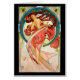Affiche de lithographie Art nouveau de 1898 de l'artiste tchèque Alphonse Mucha (1860-1939). Belle femme en robe rouge, fleurs dans ses cheveux longs, fluides, rouge vif, son dos arqué, regardant sur les épaules bardées, debout sur ses orteils.