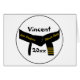 Customisez la carte Black Belt 4th Degree Arts martiale avec le nom de votre athlète et la date. Créez votre propre carte personnalisée unique pour toutes les occasions, y compris les félicitations, le test de ceinture noire quatrième degré ou les invitations à l'examen, heureux anniversaire etc. Il présente une conception de ceinture noire avec quatre barres d'or dans un cercle avec un arrière - plan blanc.
