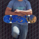 Artsy Cobalt Blue Golden Yellow Acrylic Painting Skateboard