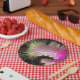 These paper plates have an artsy design on it.