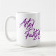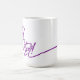 A paintbrush dipped in purple paint trails the swoop of the "y" to the back of the mug.