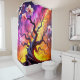 This pretty shower curtain has a beautiful flower tree pictured on it.