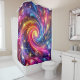 This shower curtain has a colourful galaxy design on it.