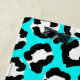 Artsy, modern, trendy, and girly black and white hand drawn leopard animal print pattern on a Cyan blue background.