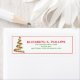 This red framed label features a colourful abstract art swish red, green, and gold Christmas tree. It has a faux gold glitter star topper. The text information is on the right side of the label. Fill in the personalize fields with your information.