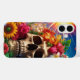 This phone case has an artsy skull pictured on it.