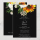 Artsy Sunflower Floral Rehearsal Dinner - Black Invitation