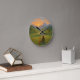 Wall clock featuring a beautiful image of a woman and her pet enjoying stunning scenery.