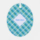 Oval metal Christmas ornament features the diagonally tiled Aruban Flag with the word ARUBA, below, in the colours of the flag. A white fractal of squiggly squares holds a place for your name to personalize your look or create a special gift. The Aruban flag is blue, red, yellow. Travelers and families with Aruban heritage will enjoy this.
