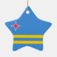 Celebrate Aruba’s vibrant identity with this beautifully crafted ceramic ornament featuring its national flag—a striking sky-blue field adorned with two yellow stripes and a red four-pointed star with a white border. The blue symbolizes the Caribbean sea, Aruba’s peace, and its hopeful future. The yellow stripes represent the island's industry, tourism, and sunny prosperity, as well as its autonomous status. The red star, outlined in white, embodies the island’s red soil, iconic white beaches, cultural diversity, and the guiding spirit of its people. A meaningful keepsake or holiday decoration for Aruba lovers and travelers.