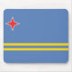 Aruba's national flag was adopted on March 18, 1976. The design consists of a field of light blue (called "Larkspur"), two narrow parallel horizontal yellow ("Bunting Yellow") stripes in the bottom half, and a four-pointed white-fimbriated red ("Union Flag red") star in the canton. The flag was designed in part by vexillologist Whitney Smith.