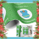 Aruban Flag Christmas angel personalized wrapping paper. Design features an angel, dressed in the flag of Aruba inside a white circle of squiggly squares. Background is green squiggly squares. Personalized with name, year, and holiday, or whatever you wish. Wrap your holiday gifts and share your heritage or travel plans at the same time.