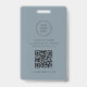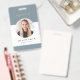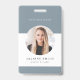 This employee ID badge features a round photo slot, logo option and modern sage green design. This badge is perfect for any profession and includes business contact details on the backside.