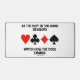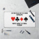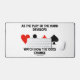 Showcase your wry bridge / duplicate bridge attitude with this desk mat featuring the four card suits along with the following bridge observation: "As The Play Of The Hand Develops Watch How The Odds Change". No need to be an avid bridge player or bridge teacher to enjoy!
