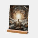 mbark on a breathtaking visual journey with this captivating AI-generated artwork, "Ascension to the Light." This mesmerizing piece depicts a lone figure ascending a mystical stairway, surrounded by swirling clouds and intricate, ethereal designs that evoke ancient artistry and cosmic wonder. A radiant, golden light beckons from the center, symbolizing hope, enlightenment, and the pursuit of destiny.