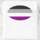 The asexual pride movement flag has four horizontal stripes, in black, grey, white and purple. The flag was introduced in 2010.