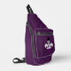 Sling Bag with fleur-de-lis (fleur-de-lys or lily flower) symbol with rainbow stripes of black, gray, white and purple from asexuality flag; ace pride design on purple background