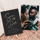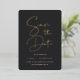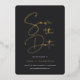 Invite guests to mark their calendars for your wedding with these modern and minimal save the date cards. Simple design features "save the date" in gold foil handwritten script on a soft ash black background, with your names, wedding date, location, and website beneath. Add a favourite portrait-oriented engagement photo to the back.