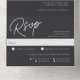 A beautiful typography based monogram wedding invitation featuring your initials in oversized script lettering at the top, in tone on tone shades for a watermark effect. Personalize with your wedding details in classic serif lettering aligned at the lower right. Our Ash colorway makes a classic statement with crisp white lettering on a soft black background. Attached RSVP card and folding style makes this all-in-one invitation an appealing choice.