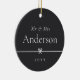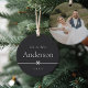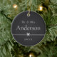 Sweet and simple photo ornament for your first Christmas as a married couple features a minimalist layout, with your titles (shown with "Mr & Mrs"), surname, and the year in clean, classic serif typeface on a soft ash black background. A petite bow through the centre completes the design. Add a wedding photo to the reverse side.