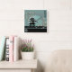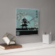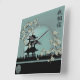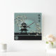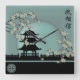 Asian blossom pagoda landscape green digital art square wall clock