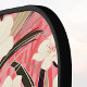 This lovely Asian-inspired pickleball paddle features a Japanese style floral print of dusty pink, light peach, garnet red, creamy white, and brown. Your monogram initial appears in a stylish typeface in pink against a color block of black.