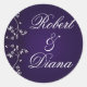 Asian inspired plum coloured design with simple white flowers and couples name.