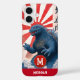 Show the world your love of pop culture while using this cool, striking, unique, custom monogram name cell phone case. A retro vintage, turquoise blue lizard monster appears over turquoise Japanese waves along with red and white sun graphics, your monogram initial and name. Personalize with your name and initial. Makes a fun and bold statement every time you use it. Makes a great gift for someone special, even yourself!
