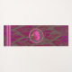 Yoga mat featuring a lotus on an Asian inspired background in muted green with fuchsia pink.