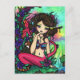 Asian Panda Mystical Pond Mermaid Fantasy Art Girl Postcard