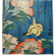 Vintage Asian image including peonies and a bird on a blue background