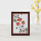 The image on this lovely Asian-inspired note card starts with my original digitally created pastel drawing of three red poppies in the centre of a piece of crumpled pale blue-grey paper. The paper is covered in lightly scribbled text. At two corners of the paper are monochromatic rose branches in brownish green that slightly overlap the poppies. Around the image is a border in the same red as the poppies then another wider border in dark brown. This beautiful, fully customizable card is blank inside for you to fill with your own thoughts. From my original design with elements from http://www.outlawbydesign.com.